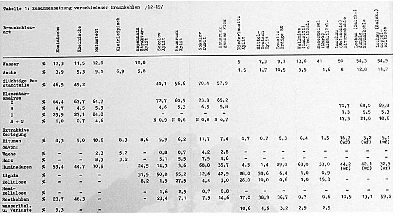 Das Verhältnis von Wachsen und Harzen in Braunkohlen verschiedener Provenienz schwankt in weiten Grenzen (Tabelle 1). Das Wachs-Harz-Verhältnis wurde bisher für die Bewertung der Schwelwürdigkeit nicht verwendet.