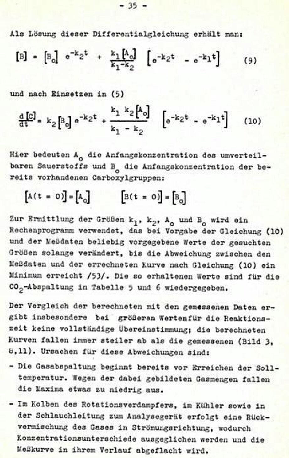 - Mit steigender Temperatur erhöht sich die Menge an abspaltbaren Carboxylgruppen. Wenn die Äktivierungsenergie der bei hohen Temperaturen decarboxylierbaren Verbindungen größer ist als die der Verbindungen, die bei tieferen Temperaturen decarboxylieren, ist ein Abfall der Geschwindigkeitskonstanten mit steigender Temperatur mög lich.