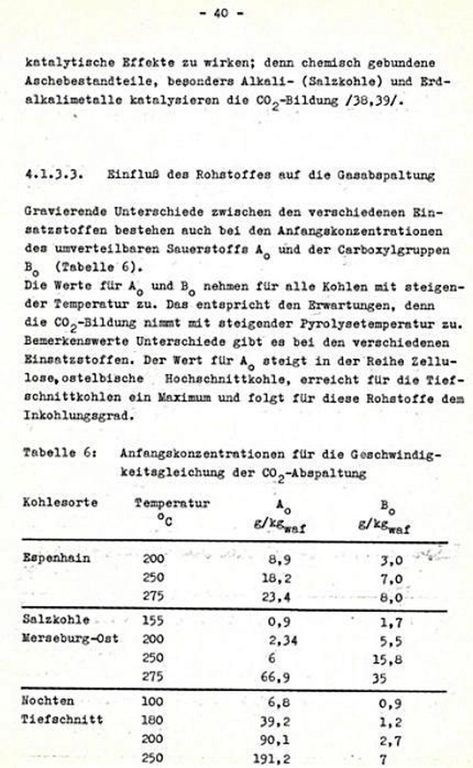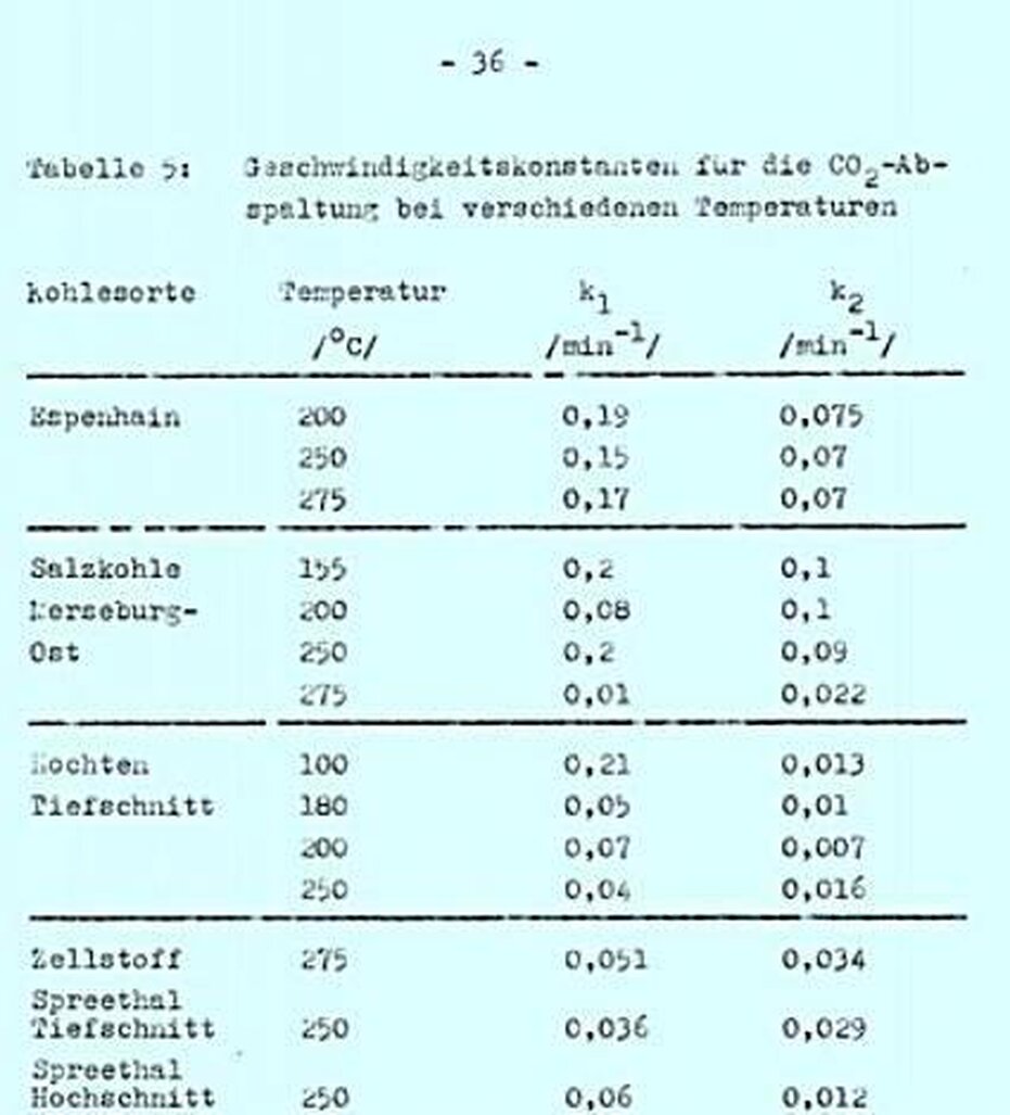 Die Temperaturabhängigkeit für die Bildung von Carboxylgruppen (kl) zeigt keinen klaren Trend. Die Zahlemwerte für kl sind bei älteren Braunkohlen (Salzkohl Verwendung der genannten Werte für die Aktivierungsenergien lässt sich abschätzen, dass die
